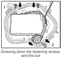 3. Push on the coil and screw it down with the fastening screw.