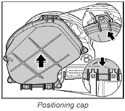 1. Position cap on main headlight and press into place, making sure that the cap engages once at the top and twice at the bottom.