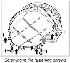 2. Screw in four fastening screws -1- for the cap.