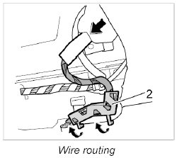 8. Engage holder -2- for the electric wire and push wire in behind the roof liner.