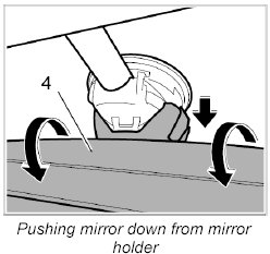 7. Fold mirror downwards -4- and push down from the front windscreen bracket.