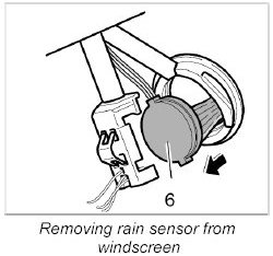 9. Slowly remove rain sensor -6- from the windscreen.