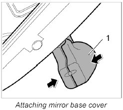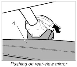 3. Push rear-view mirror -4- onto the mirror holder from below.