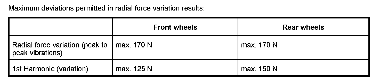 A new tire must be fitted if the radial force variation cannot be reduced to the values listed in the table.