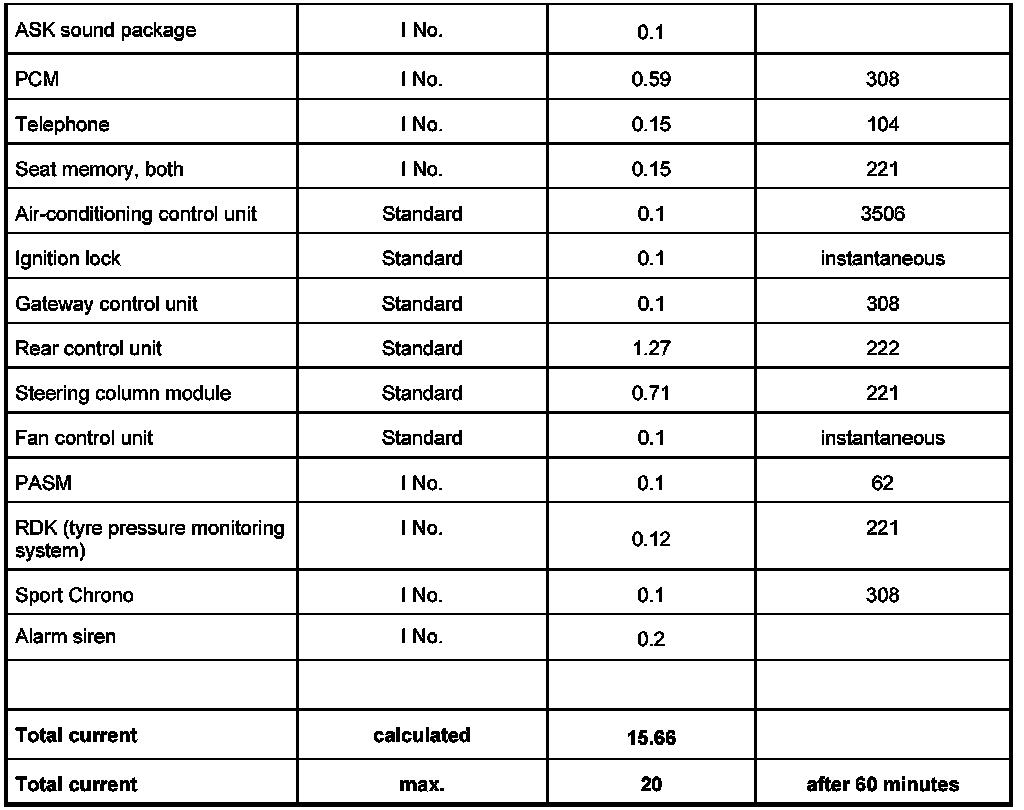 INFORMATION: Before measuring the closed-circuit current, determine the vehicle equipment (I numbers) and establish the expected closed-circuit current with the aid of the attached table.