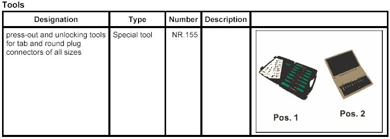 1. Open the secondary locking mechanism using the press-out and unlocking tools for tab and round plug connectors of all sizes NR.155. Insert the tool in the opening provided and lift the locking mechanism. The locking mechanism engages in the upper position.