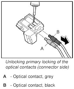 Grey contacts are used in the wiring harness >> control unit junction (optical input).
