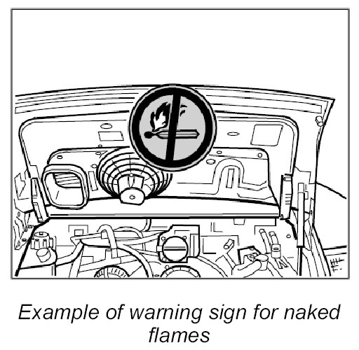 1. Place a warning sign in a clearly visible position in the work area or on the vehicle.