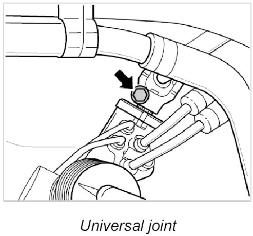 15. Loosen universal joint (steering shaft) at steering gear -Arrow-.
