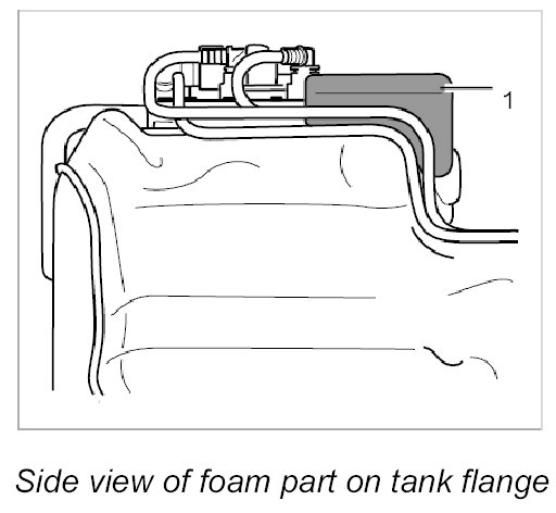 1. Stick foam part -1- to the fuel tank flange if necessary.