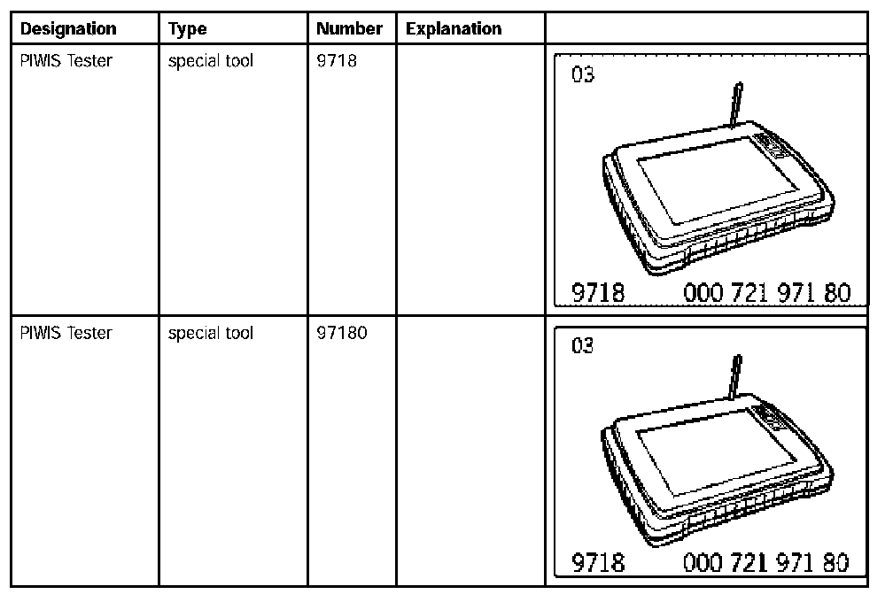 Carry out tests only with the PIWIS Tester 97180 diagnostic module;