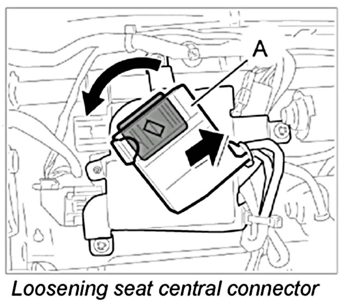 1. Turn seat central connector -A- at AWS holder to the left and remove from the holder.