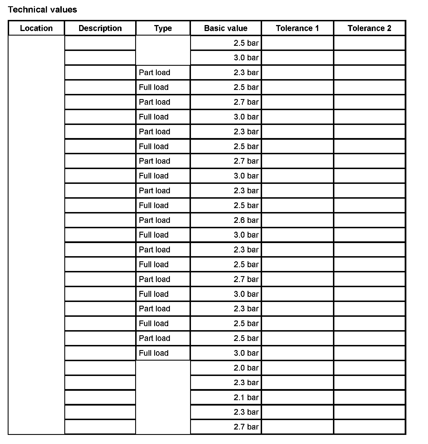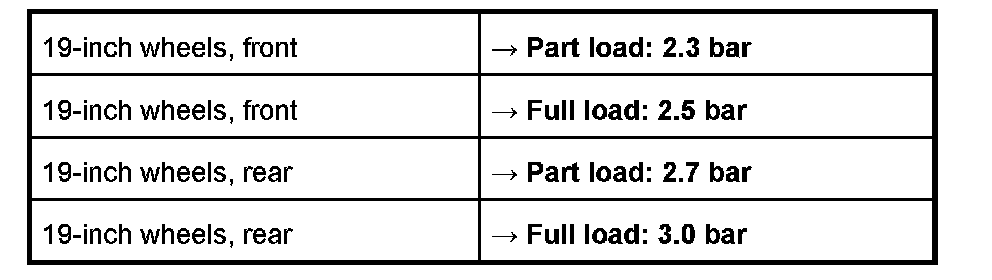 Tire pressure of cold tires (approx. 20 degrees C)