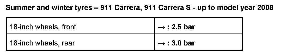 When replacing summer tires, pay close attention to the tire specification number! The specification codes N1, N2, N3 or NO distinguish the summer tires specially authorized by Porsche from other models of the same tire type and size!