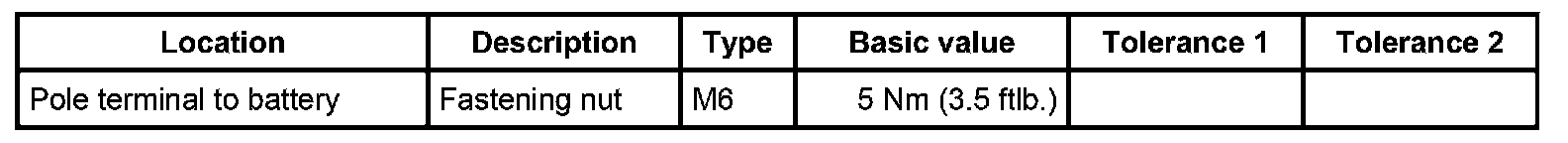 4. Connect the negative cable. - M6: 5 Nm (3.5 ftlb.)