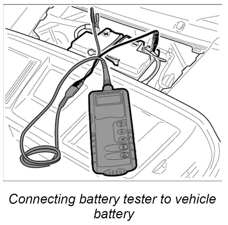 INFORMATION: Before checking the battery with a battery tester, the voltage at the battery must remain static for a short time.