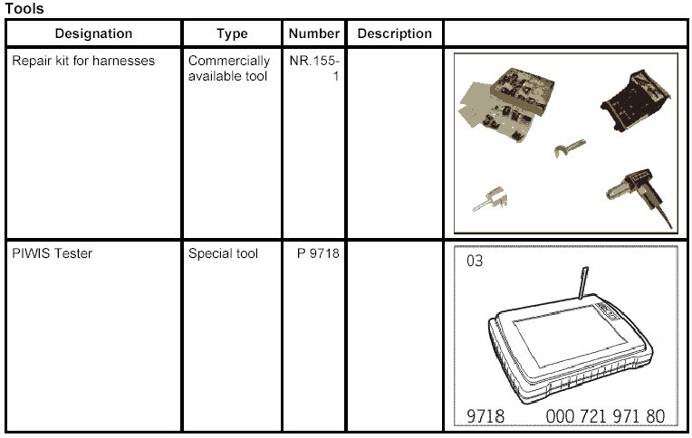 - For repairing wire harnesses, the wire harnesses listed in step 1 are only offered as complete units, without exchanging individual connectors.