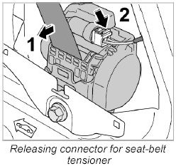 2.2. Pull off connector on seat belt tensioner.