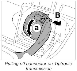 5. Pull off connector on Tiptronic transmission.