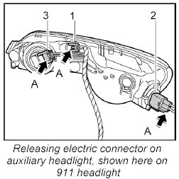 2. Disengage electric lines from auxiliary headlight and front apron.