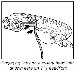 2. Connect plug connection to auxiliary headlight and engage the lines on the auxiliary headlight.
