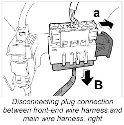 1.1. Release plug connection between front-end wire harness and main wire harness, right -arrow a- and disconnect -arrow B-.