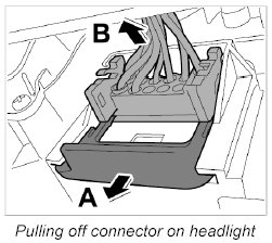 4.2. Pull off connector on headlight at left and right -arrow B-.