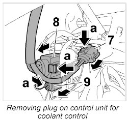 5. Pull off connector and plug connection on control unit for coolant control -7 to 9-.