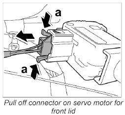 13. Release and pull off connector on servo motor for front lid release -16-.