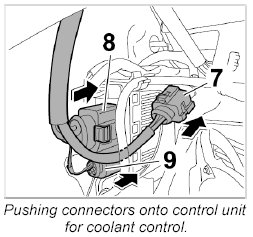 17.1 Push the two connectors onto the control unit for coolant control -8 and 9- until they engage securely.