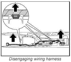 2. Disengage retaining clips with wiring harness on centre console and remove the harness.