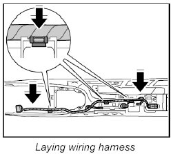 1. Lay wiring harness with retaining clips in centre console and push on retaining clips at the points provided.