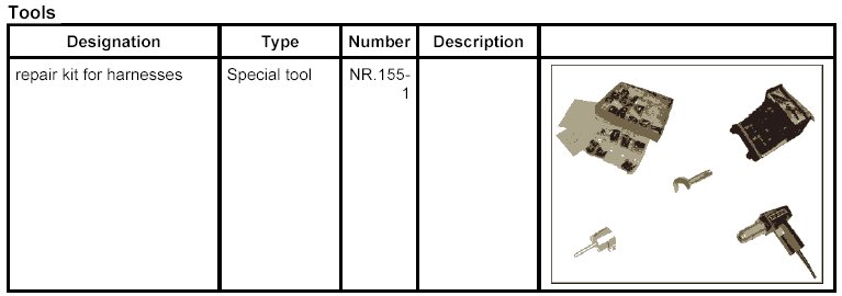 - The procedure for stripping insulation from, crimping, and shrinking/insulating the electric lines must be complied with and observed. The procedures are described in detail in the repair kit for harnesses NR.155-1.
