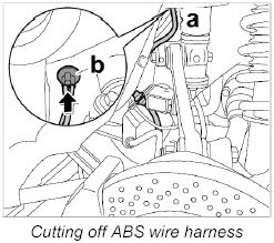 INFORMATION: When cutting the ABS wire harness, make sure that there is enough line length left to join to the new lines.