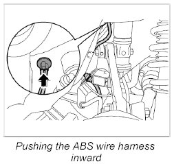 5. Push the ABS wire harness inward -arrow-.