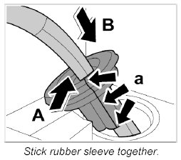 6. Cut through the rubber sleeve -a- and insert the HBA line -arrow A-. Stick the rubber sleeve together at the cut edge -a- using a commercially available PUR adhesive and seal. Press the rubber seal into the opening -arrow B-.