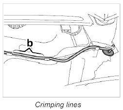 5. Cut through the rubber sleeve at the side of the HBA line -a- and remove the HBA line -arrow-.