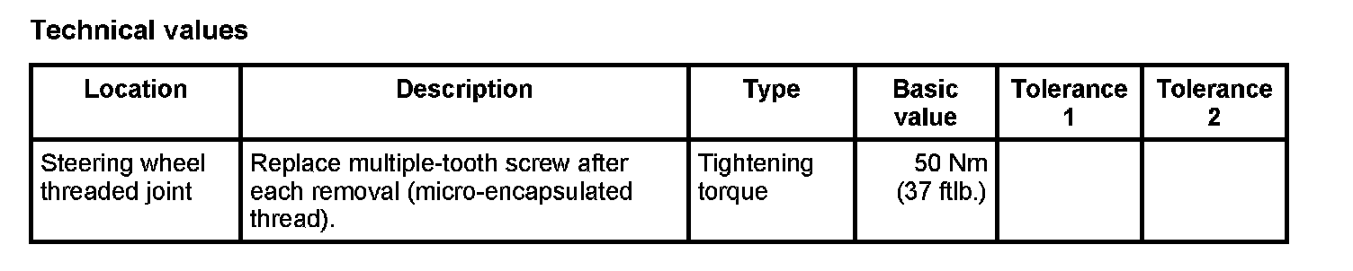 ^ The steering wheel is made of magnesium alloy. The tightening torques must be strictly observed.