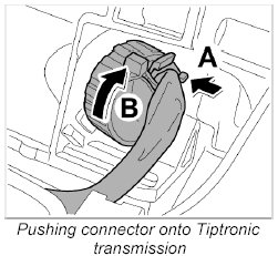 2. Push connector onto Tiptronic transmission -3-.
