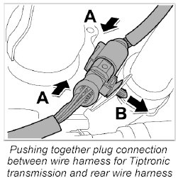 Removing wire harness for Tiptronic transmission