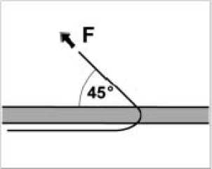 Unfavorable angle (strong traction required)