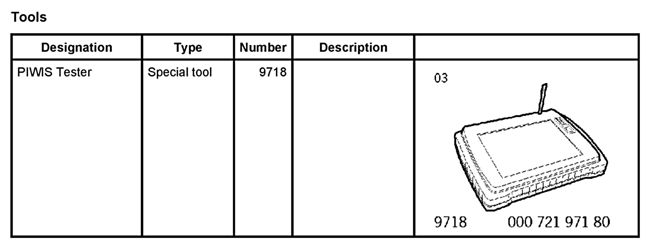 - The PIWIS Tester 9718 instructions take precedence since the description may be different. This may be due to more recent software versions.