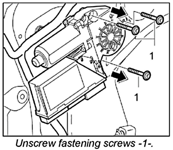 1. If a new power window motor is to be installed, read out the values first. Refer to Removing and installing power window motor