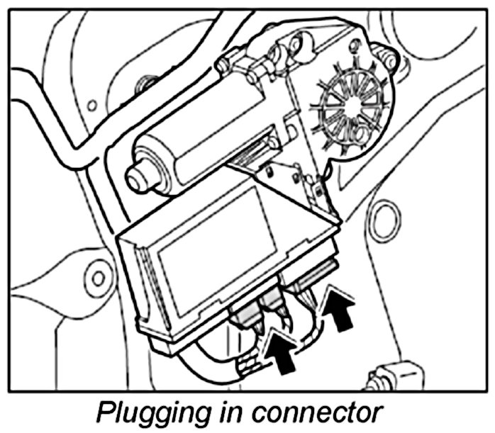 3. Press in electric connector on power window motor until it is felt to engage.