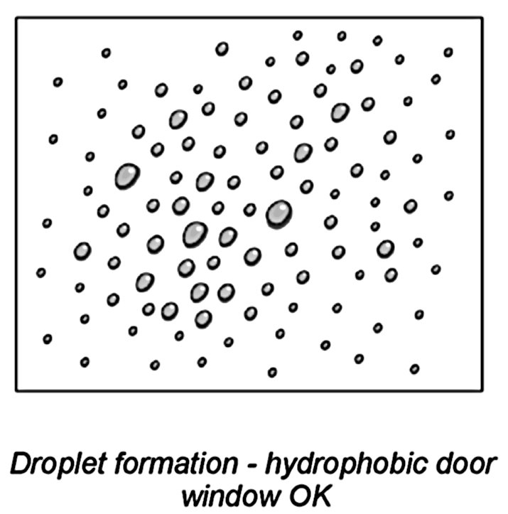 - Droplet formation - hydrophobic door window OK