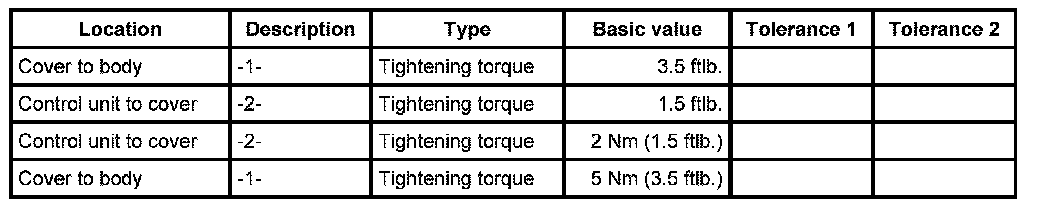 Tightening torques for telephone control unit