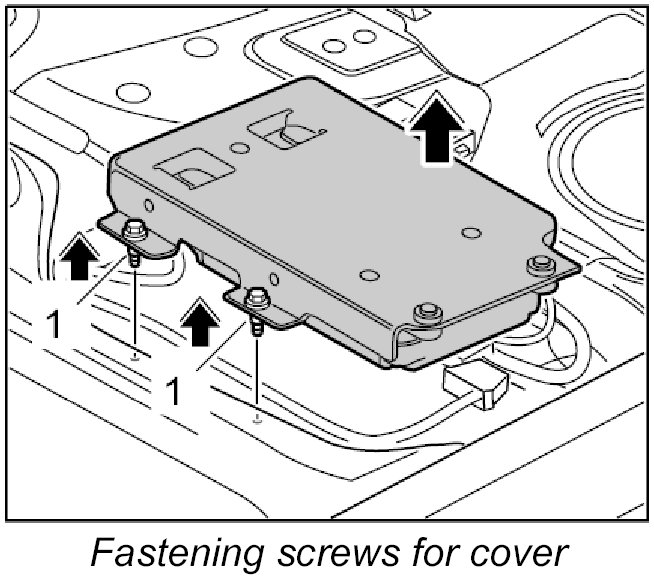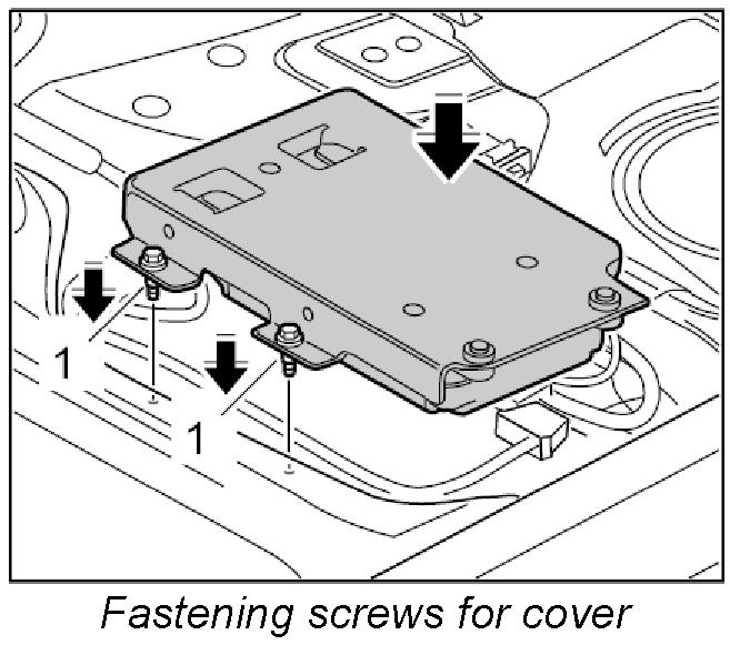 4. Turn over the cover and telephone control unit, position it on the floor of the vehicle and screw down with fastening screws -1-. Tightening torque: 5 Nm (3.5 ftlb.)