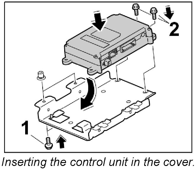 1. Insert control unit into the cover and screw tight with the two fastening screws -2-. Tightening torque: 2 Nm (1.5 ftlb.)