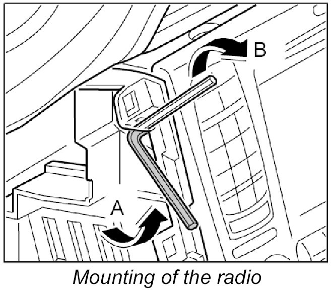 2. Check that the locking tabs on the radio are out, opening the locking mechanism with an Allen key if necessary.