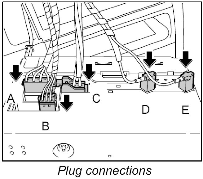 1. Connect the electric plug connections in the sequence -C, B, A- and the antenna amplifiers -D, E- so that the plugs are felt to engage.